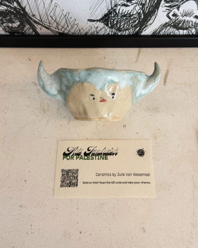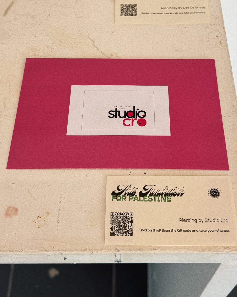 All of these pieces have been donated by artists from Ghent and around who care about this cause. Thanks to their free donations, the highest bid we receive will be deposited entirely to families in need in Palestine.